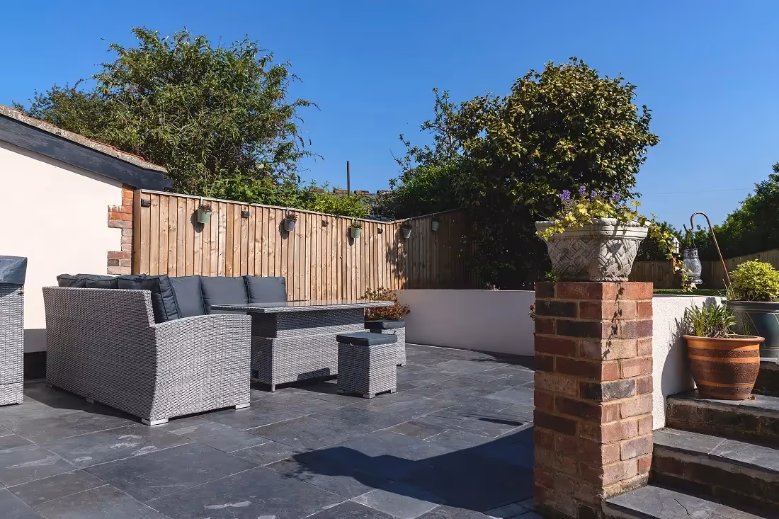 Premium and built to last, granite patios cost $19-$32 per sq. ft. Known for strength and weather resistance, granite’s dense surface is extremely low maintenance. Installation is more labor-intensive due to its hardness, resulting in a higher cost but exceptional longevity.