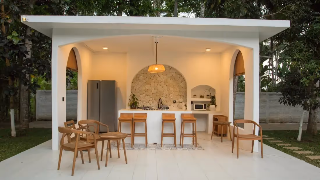 Design inviting outdoor spaces centered around fireplaces or full outdoor kitchens. Use natural stone for fire features and surround them with gravel or stone patios for safety and style. Choose fire-resistant plants and materials, and keep nearby planting beds filled with moisture-rich greenery to maintain a layout that’s safe, functional, and visually cohesive.